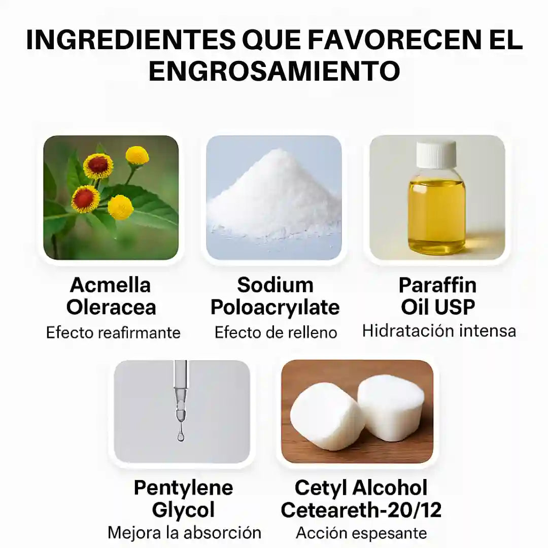 ✅ No. Es un cosmético voluminizante de uso externo. No reemplaza tratamientos médicos y no requiere fórmula médica.